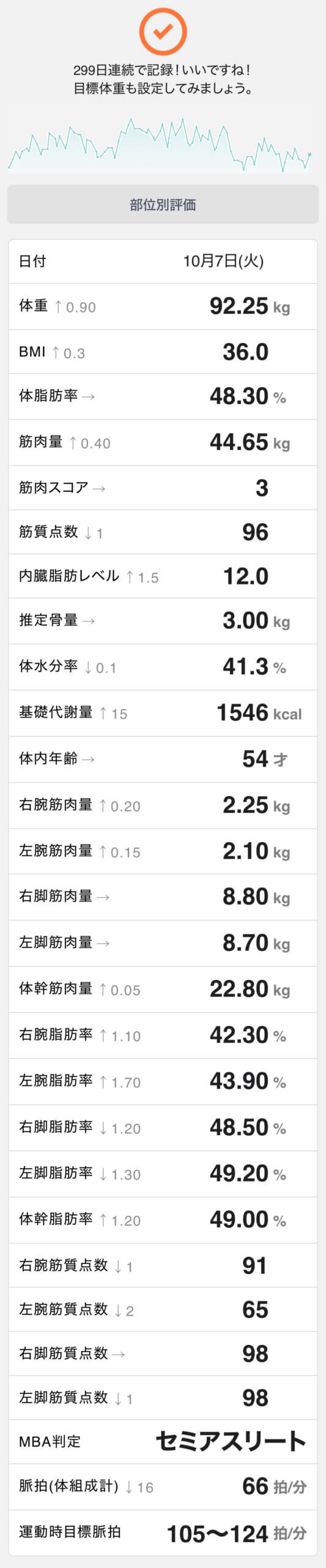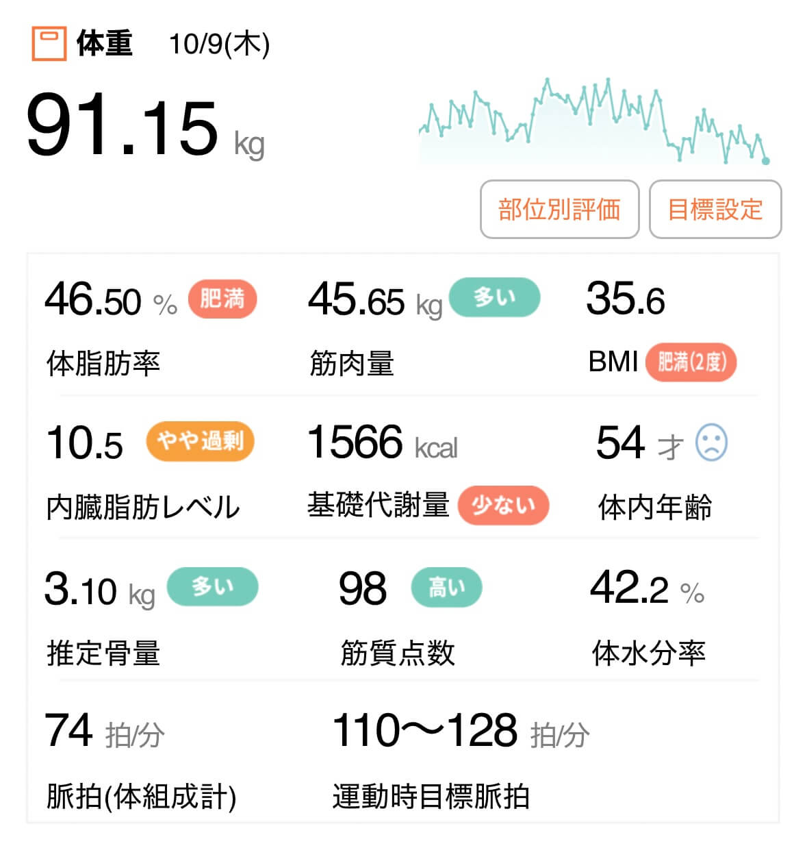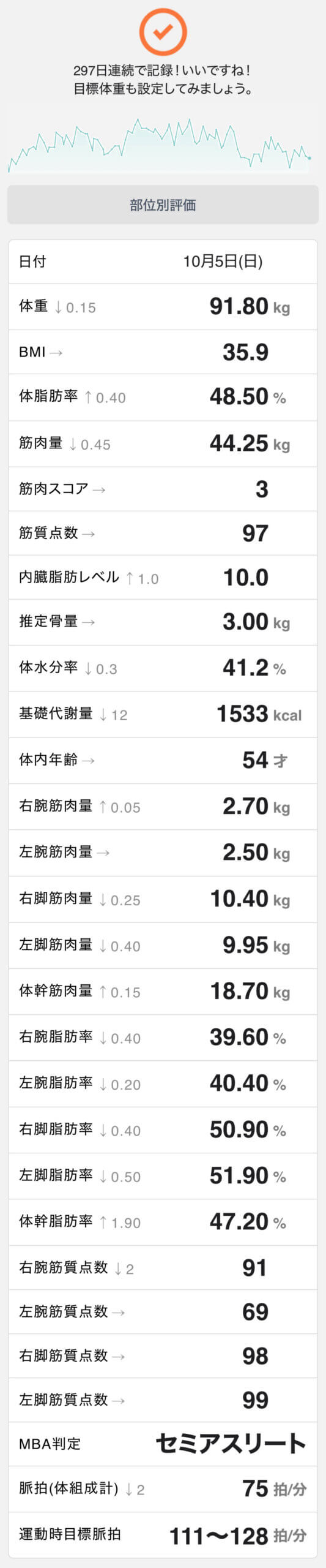 2025年10月4日(土)から、10月10日(金)までの体重記録を終わりに載せますね。