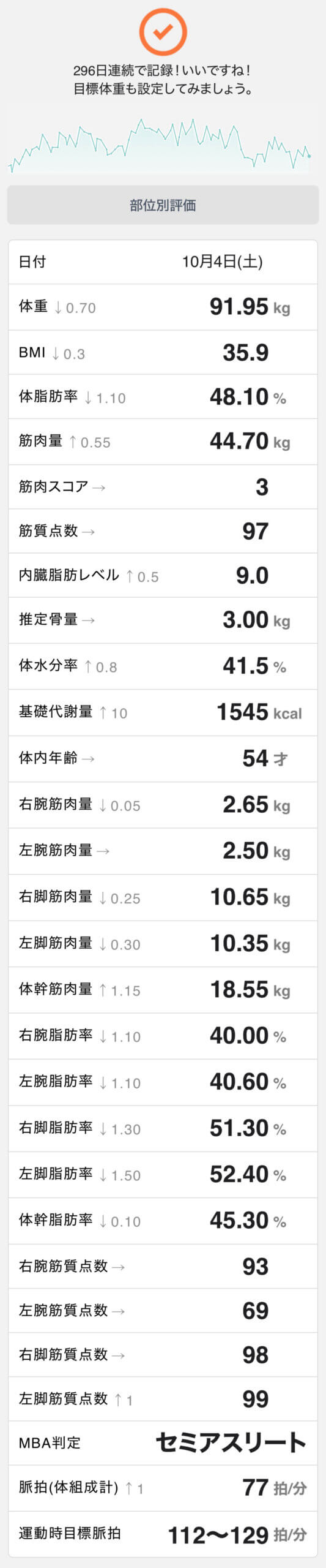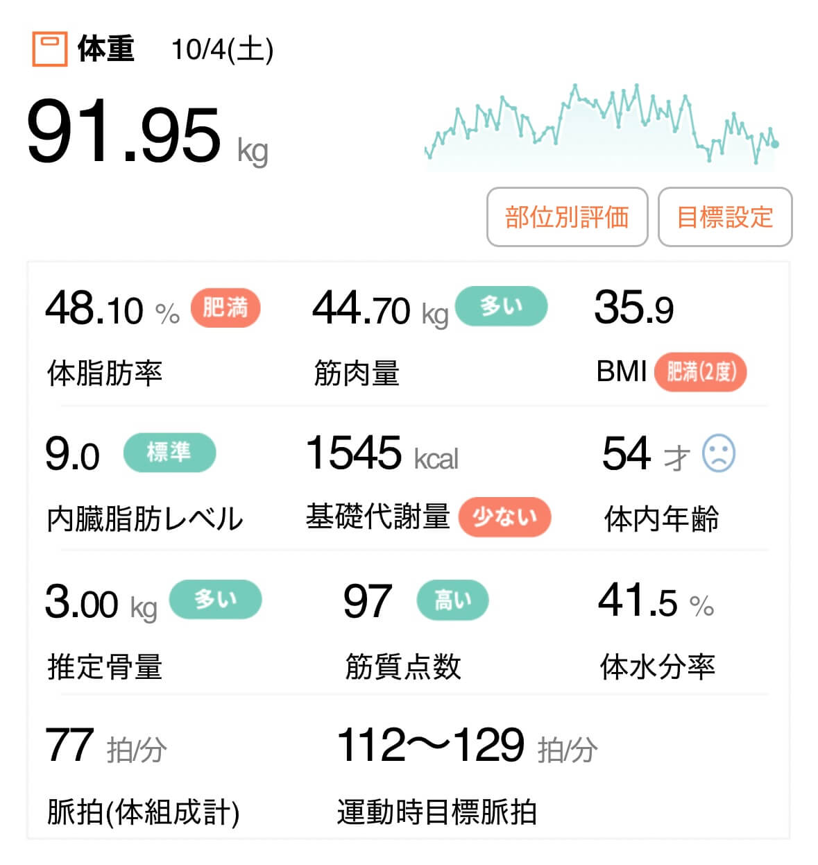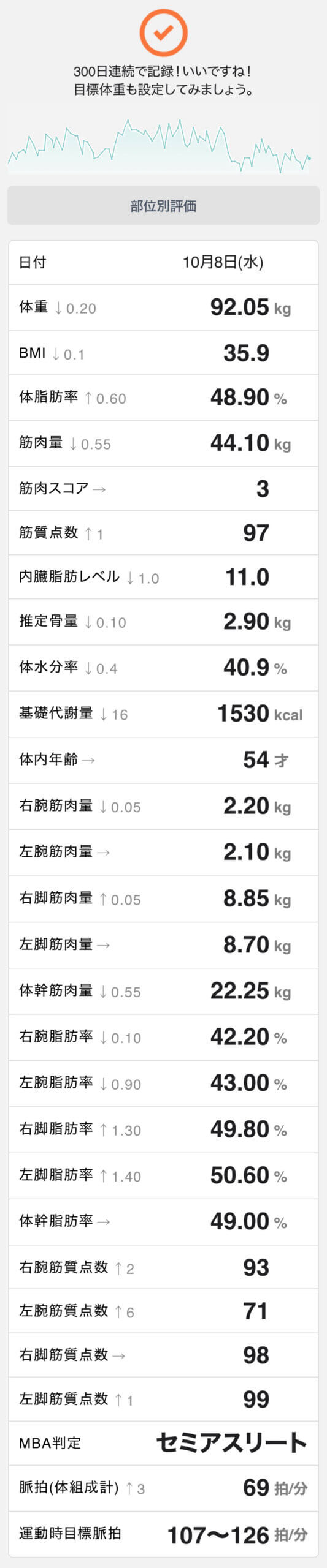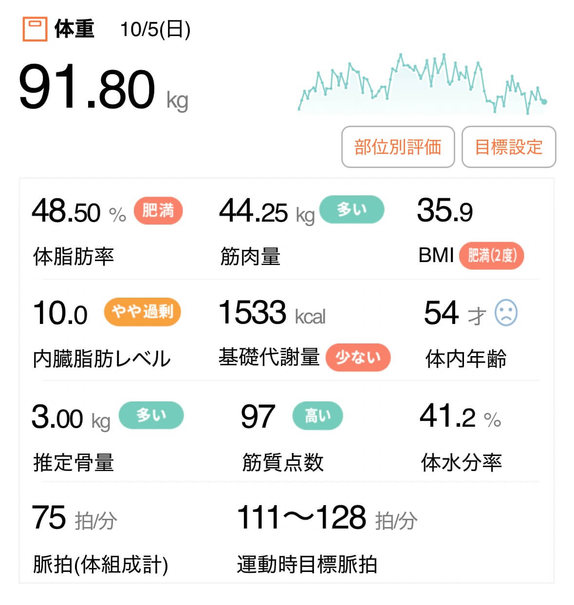2025年10月4日(土)から、10月10日(金)までの体重記録を終わりに載せますね。