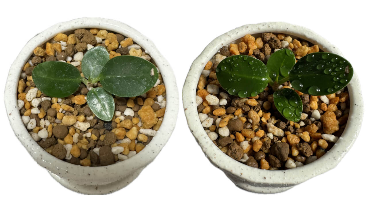 週に二度ほど試しても、葉水が乾くとこれくらいに白っぽさがあります。